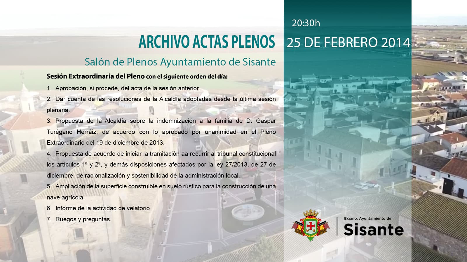 - Propuesta de la Alcaldía sobre la indemnización a la familia de D. Gaspar Turégano Herráiz, de acuerdo con lo aprobado por unanimidad en el Pleno Extraordinario del 19 de diciembre de 2013.