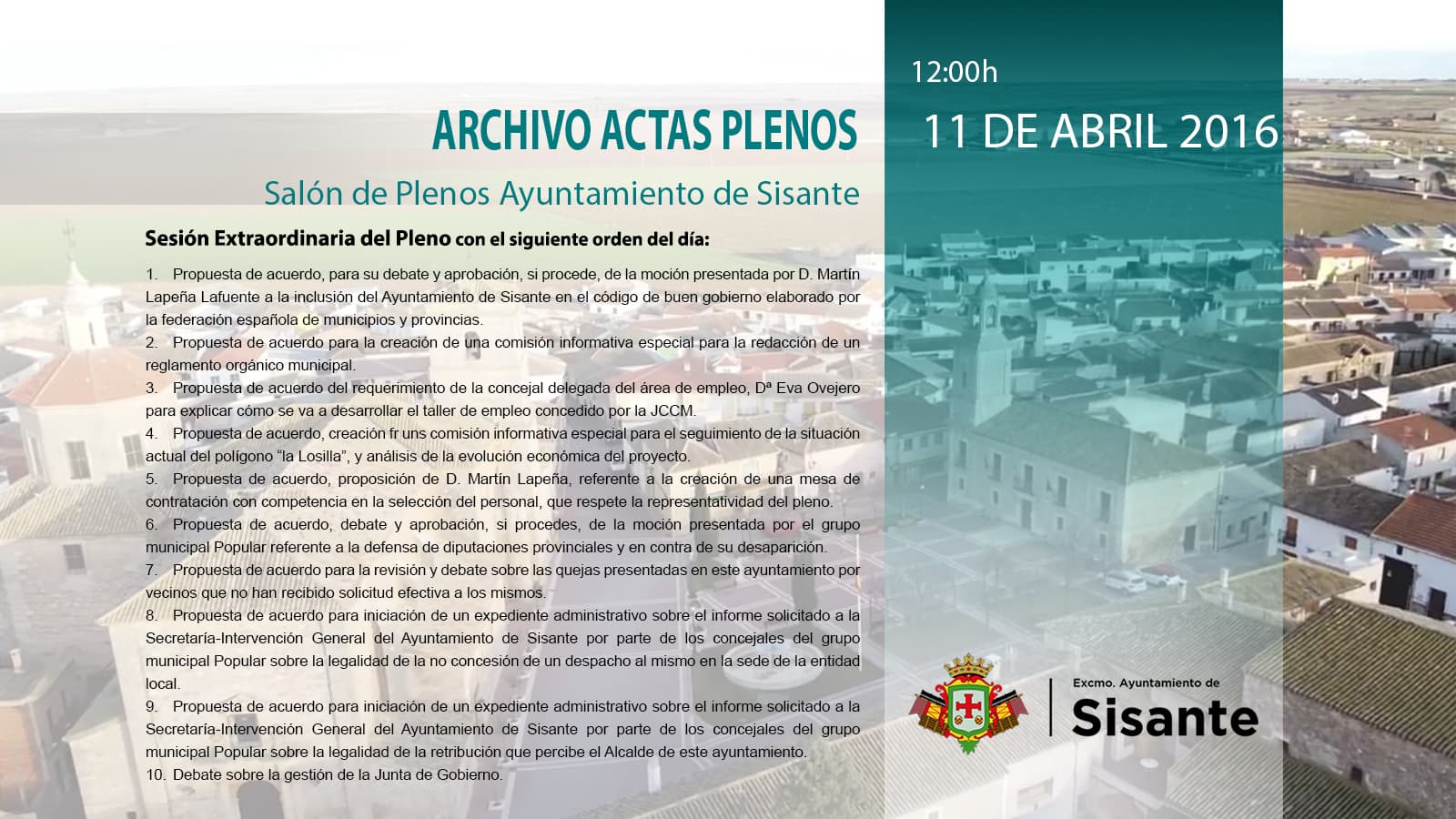 - Propuesta de acuerdo, para su debate y aprobación, si procede, de la moción presentada por D. Martín Lapeña Lafuente a la inclusión del Ayuntamiento de Sisante en el código de buen gobierno elaborado por la federación española de municipios y provincias.