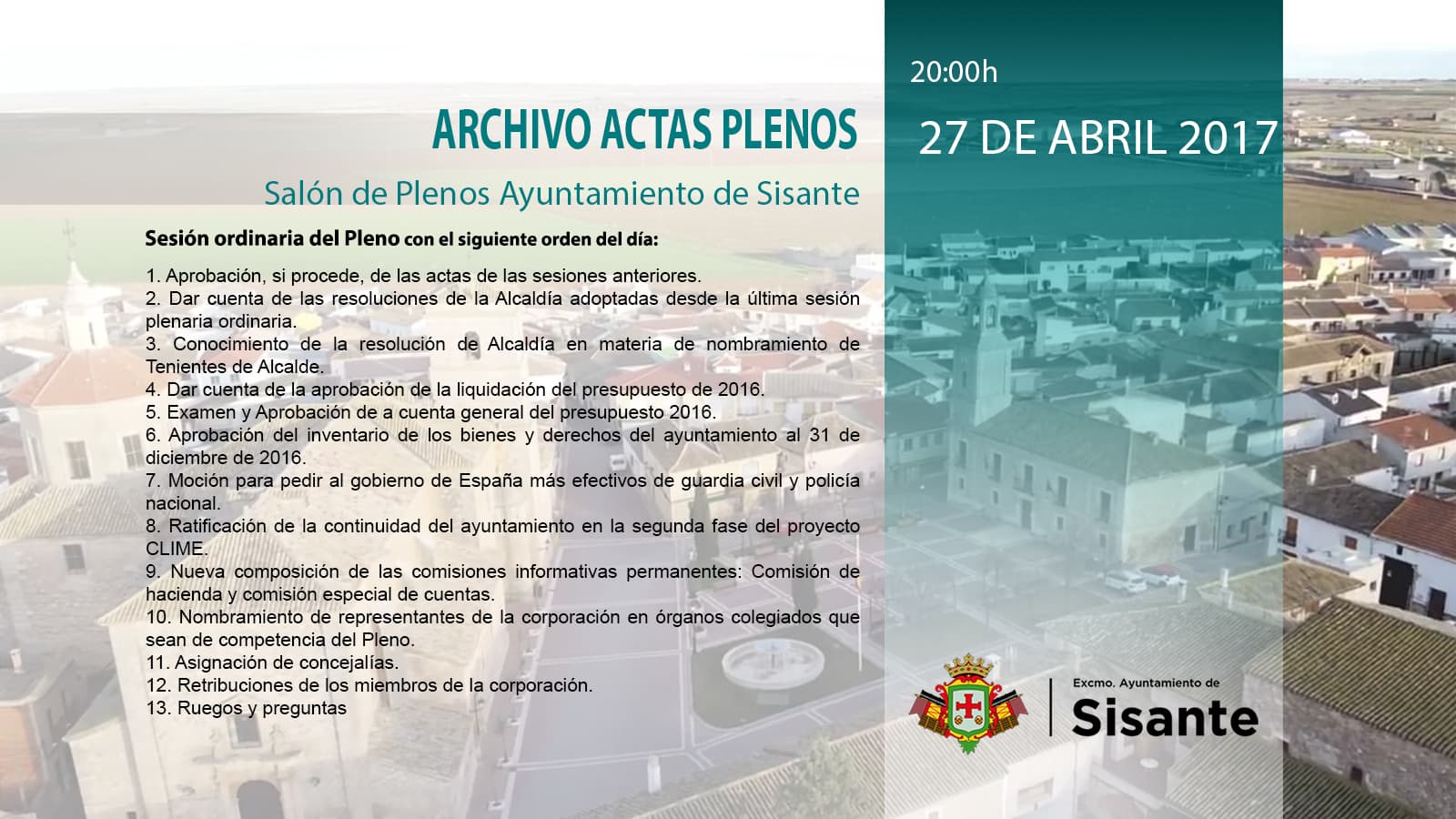 Sesión Ordinaria del Pleno con el siguiente orden del día: