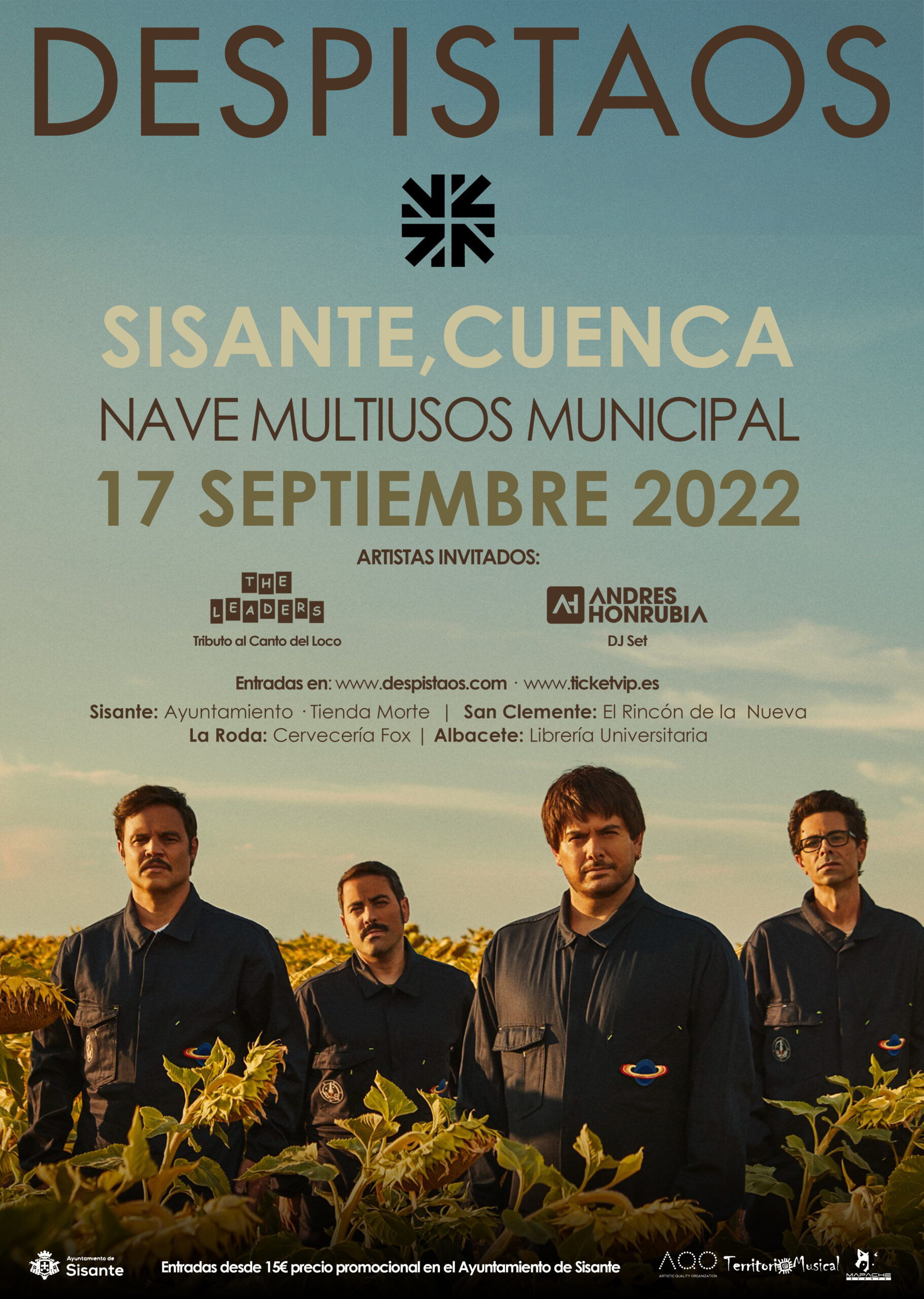Por su parte, la primera confirmación para las Fiestas y Ferias Patronales, y a modo de broche final de las mismas, el grupo de pop Despistaos actuará en Sisante, presentando su último trabajo, ‘Ilusionismo’, el 17 de septiembre. Los guadalajareños, que cosecharon grandes éxitos en los 2000, han colaborado en este disco con músicos actuales, como Cepeda, Dvicio o La Oreja de Van Gogh. En este evento, el grupo local The Leaders actuará como telonero, regresando a los escenarios tras un parón con un tributo El Canto del Loco. Para finalizar la fiesta, el DJ Andrés Honrubia llegará con su H-Sound.