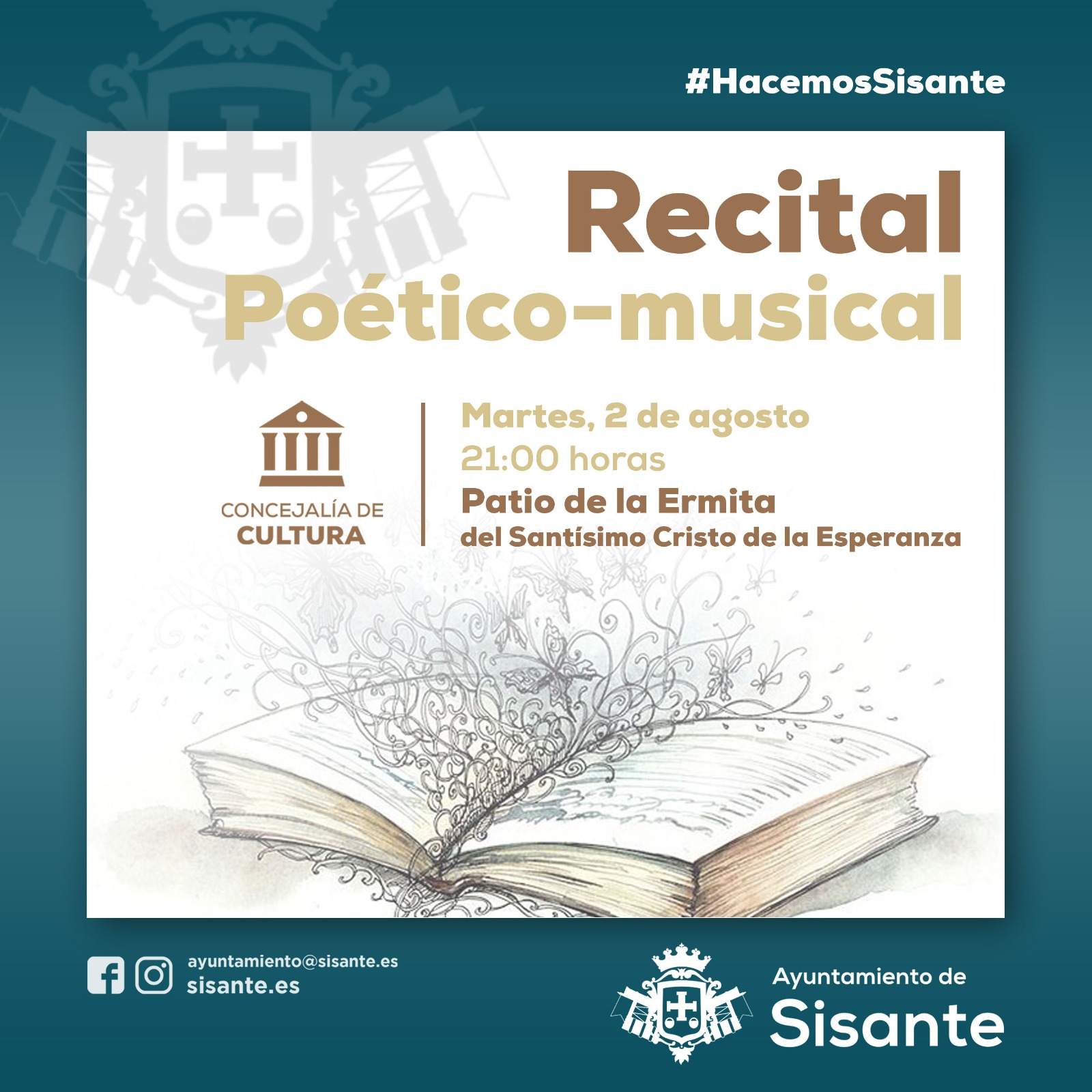 La localidad de Sisante acogerá un recital poético-musical, que tendrá lugar el próximo martes, 2 de agosto, en el patio de la Ermita del Santísimo Cristo de la Esperanza.