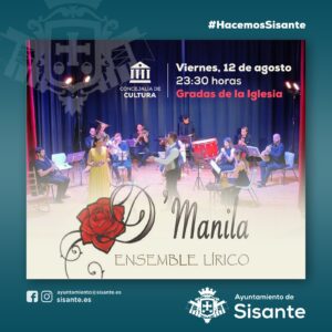 La Zarzuela estará presente en la programación cultural de verano de Sisante. El próximo viernes, 12 de agosto, el Emsemble Lírico D’Manila actuará a las 23:30 horas en las Gradas de la Iglesia, con su espectáculo Aire de Zarzuela.