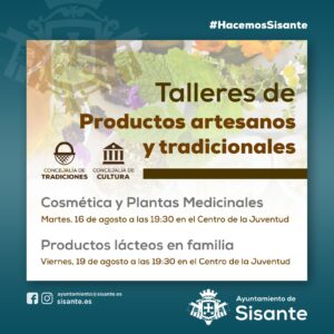 Las Concejalías de Cultura y de Tradiciones han organizado dos talleres de productos artesanales, que se impartirán los días 16 y 19 de agosto.