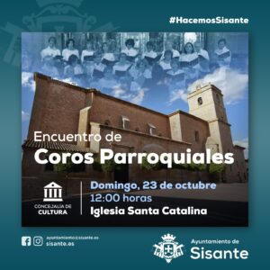 El Coro Parroquial Santa Catalina de nuestro municipio, así como la Concejalía de Cultura del Ayuntamiento, han organizado el próximo domingo, 23 de octubre de 2022, a las 12:00 horas, un encuentro coral, junto al Coro Nuestra Señora de la Asunción, de la Parroquia de Brunete.
