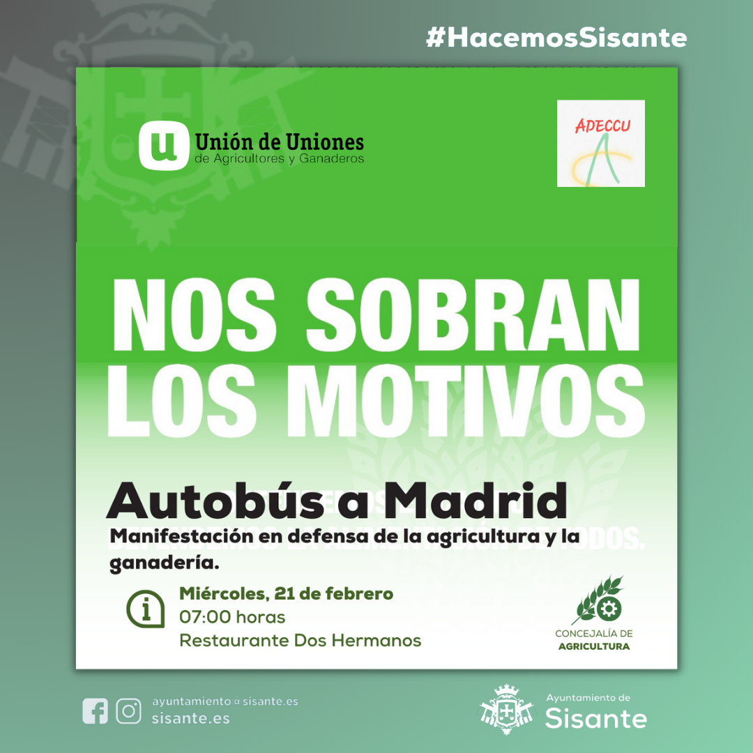 Autobús manifestación en Madrid en defensa de la agricultura: «Nos sobran motivos» Desde la Concejalía de Agricultura del Ayuntamiento de Sisante se ha organizado la salida de un autobús hacia Madrid para quienes quieran asistir …