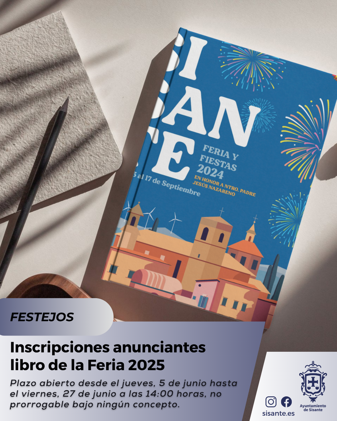 𝐀𝐁𝐈𝐄𝐑𝐓𝐎 𝐄𝐋 𝐏𝐋𝐀𝐙𝐎 𝐏𝐀𝐑𝐀 𝐋𝐀 𝐈𝐍𝐒𝐄𝐑𝐂𝐈𝐎́𝐍 𝐃𝐄 𝐏𝐔𝐁𝐋𝐈𝐂𝐈𝐃𝐀𝐃 𝐄𝐍 𝐄𝐋 𝐋𝐈𝐁𝐑𝐎 𝐃𝐄 𝐋𝐀 𝐅𝐄𝐑𝐈𝐀 𝐘 𝐅𝐈𝐄𝐒𝐓𝐀𝐒 𝟐𝟎𝟐𝟱 Desde la Concejalía de Cultura y Festejos del Ayuntamiento de Sisante se informa a las empresas y establecimientos …