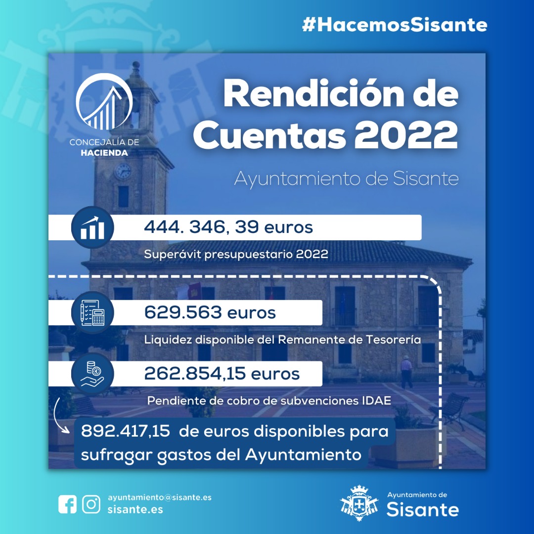 𝐑𝐄𝐍𝐃𝐈𝐂𝐈𝐎́𝐍 𝐃𝐄 𝐂𝐔𝐄𝐍𝐓𝐀𝐒 𝐄𝐉𝐄𝐑𝐂𝐈𝐂𝐈𝐎 𝟐𝟎𝟐𝟑 Desde la Concejalía de Hacienda del Ayuntamiento de Sisante, se realiza el ejercicio de transparencia en la Rendición de Cuentas sobre la situación económica y financiera del 2023, del Ayuntamiento …