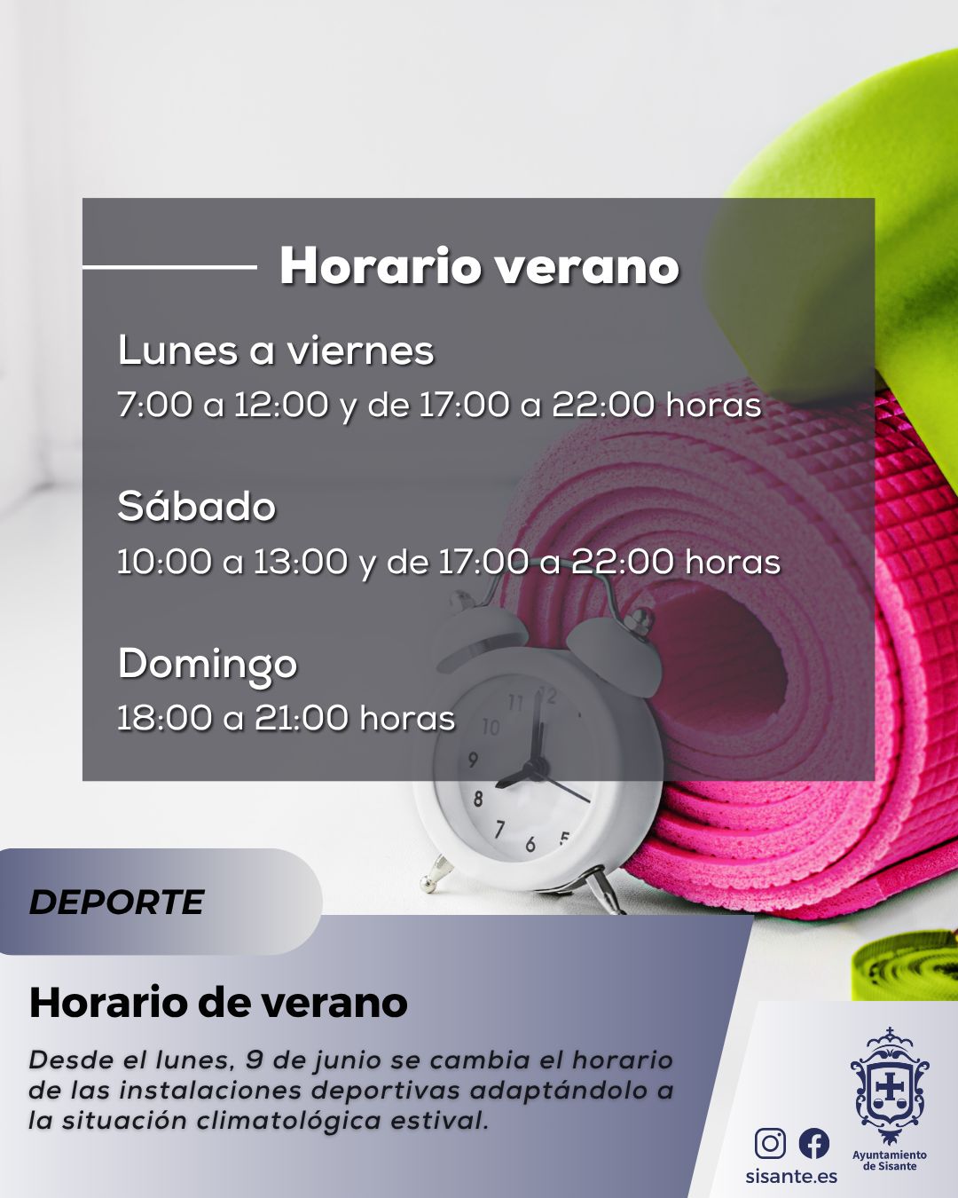 𝐇𝐎𝐑𝐀𝐑𝐈𝐎 𝐃𝐄 𝐕𝐄𝐑𝐀𝐍𝐎 – 𝐈𝐍𝐒𝐓𝐀𝐋𝐀𝐂𝐈𝐎𝐍𝐄𝐒 𝐃𝐄𝐏𝐎𝐑𝐓𝐈𝐕𝐀𝐒 Desde la Concejalía de Deportes del Ayuntamiento de Sisante informamos que a partir del lunes, 9 de junio las instalaciones deportivas municipales adoptaran el horario de verano. De lunes …