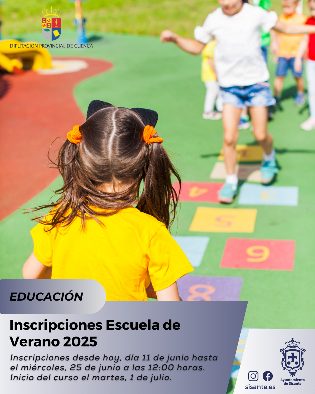 𝐏𝐋𝐀𝐙𝐎 𝐃𝐄 𝐈𝐍𝐒𝐂𝐑𝐈𝐏𝐂𝐈𝐎́𝐍 𝐄𝐒𝐂𝐔𝐄𝐋𝐀 𝐃𝐄 𝐕𝐄𝐑𝐀𝐍𝐎 𝟐𝟎𝟐𝟓 Desde la Concejalía de Educación informamos que ya está abierto el plazo de inscripción para la Escuela de Verano de Sisante 2025, una iniciativa dirigida a niños y …