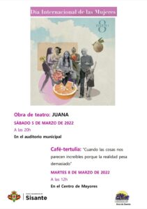 Sisante conmemorará el Día de la Mujer Trabajadora a través de dos actividades organizadas por el Ayuntamiento de la localidad. Así pues, la obra de teatro ‘Juana’ podrá disfrutarse este sábado 5 de marzo en el Auditorio Municipal a las 20:00 horas.