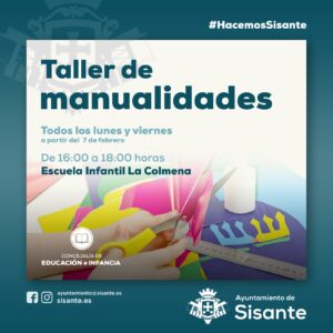 Tal y como anunciamos desde el Ayuntamiento de Sisante, en breve comenzarán a impartirse los tres talleres organizados por la Concejalía Educación e Infancia.