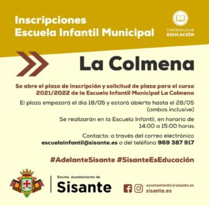 Contacto: a través del correo electrónico escuelainfantil @ sisante . es o del teléfono 969 387 917.