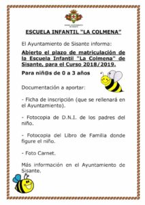 Abierto el plazo de matriculación de la Escuela Infantil «La Colmena» de Sisante, para el Curso 2018/2019.