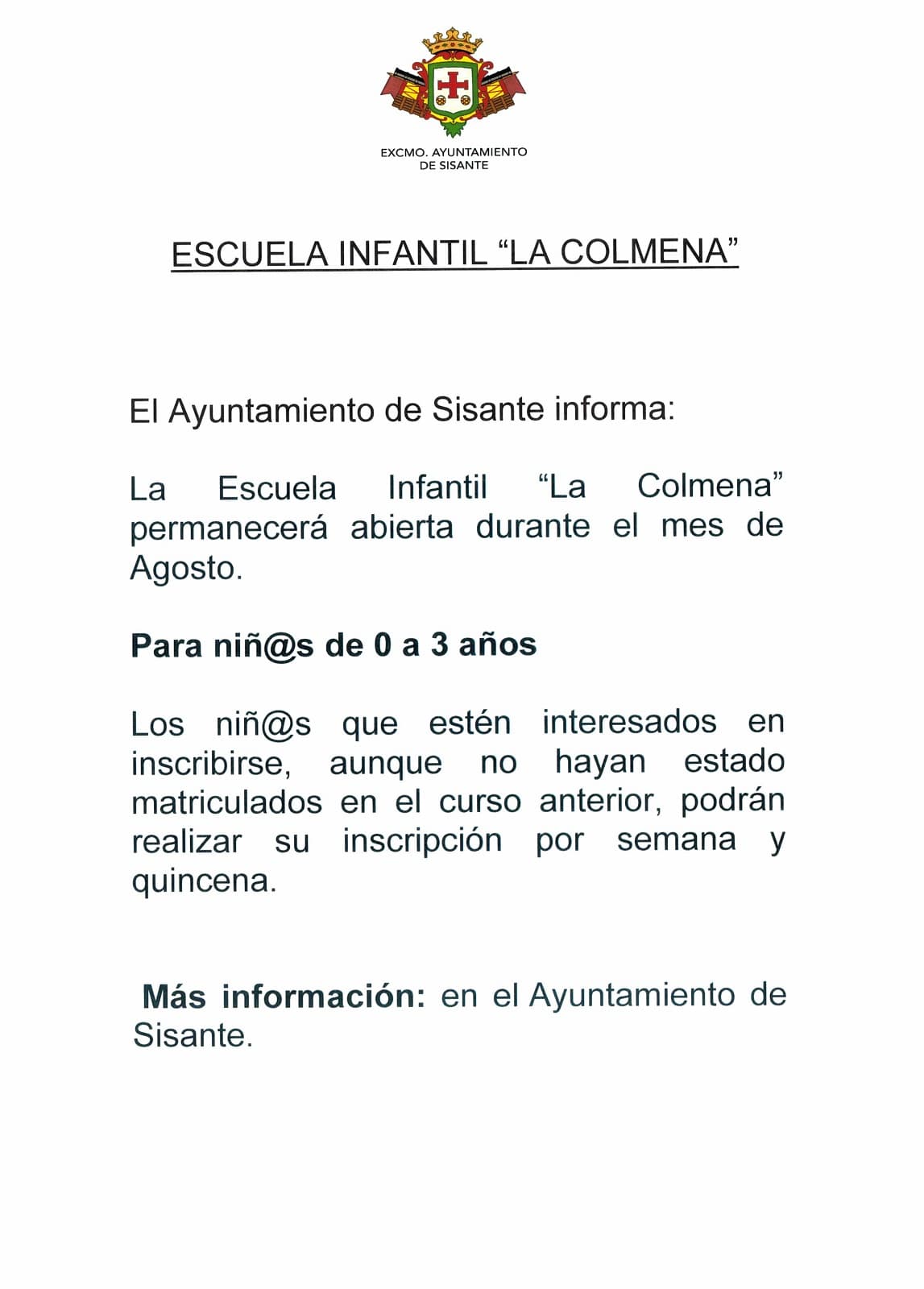 La Escuela Infantil “La Colmena” permanecerá abierta durante el mes de Agosto.