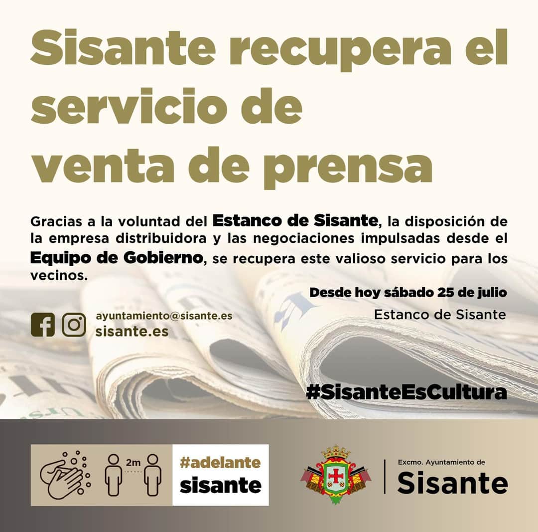 Gracias a la voluntad del Estanco de Sisante, la disposición de la empresa distribuidora y las negociaciones impulsadas desde el Equipo de Gobierno, se recupera este valioso servicio para los vecinos.