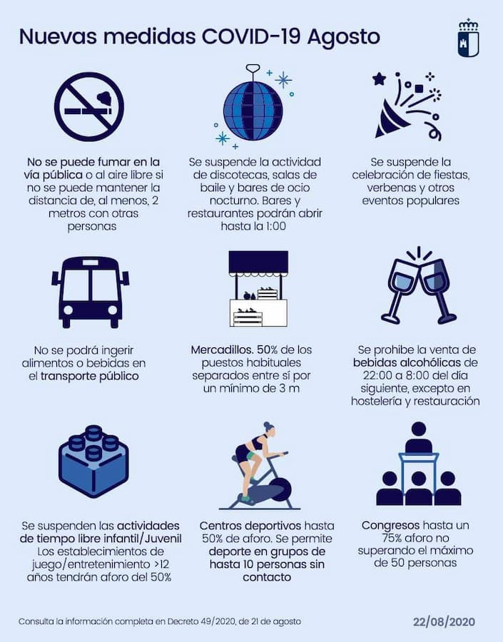 Como todos ya sabéis, la JCCM decretó una serie de nuevas medidas contra el COVID que entraron en vigor el domingo 23 de agosto a las 00:00 horas.
