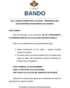El Ayuntamiento de Sisante, a través de su Concejalía de Sanidad, va a proceder a la desinfección de las calles de nuestro pueblo.