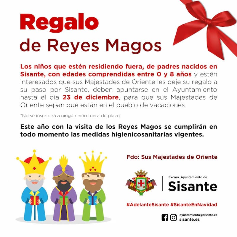 Lxs niñxs que estén residiendo fuera, de padres nacidos en Sisante, con edades comprendidas entre 0 y 8 años y estén interesados en que sus Majestades de Oriente les dejen su regalo a su paso por Sisante, deben inscribirse en el Ayuntamiento de Sisante hasta el día 23 de diciembre para que sus Majestades sepan que están en el pueblo de vacaciones.