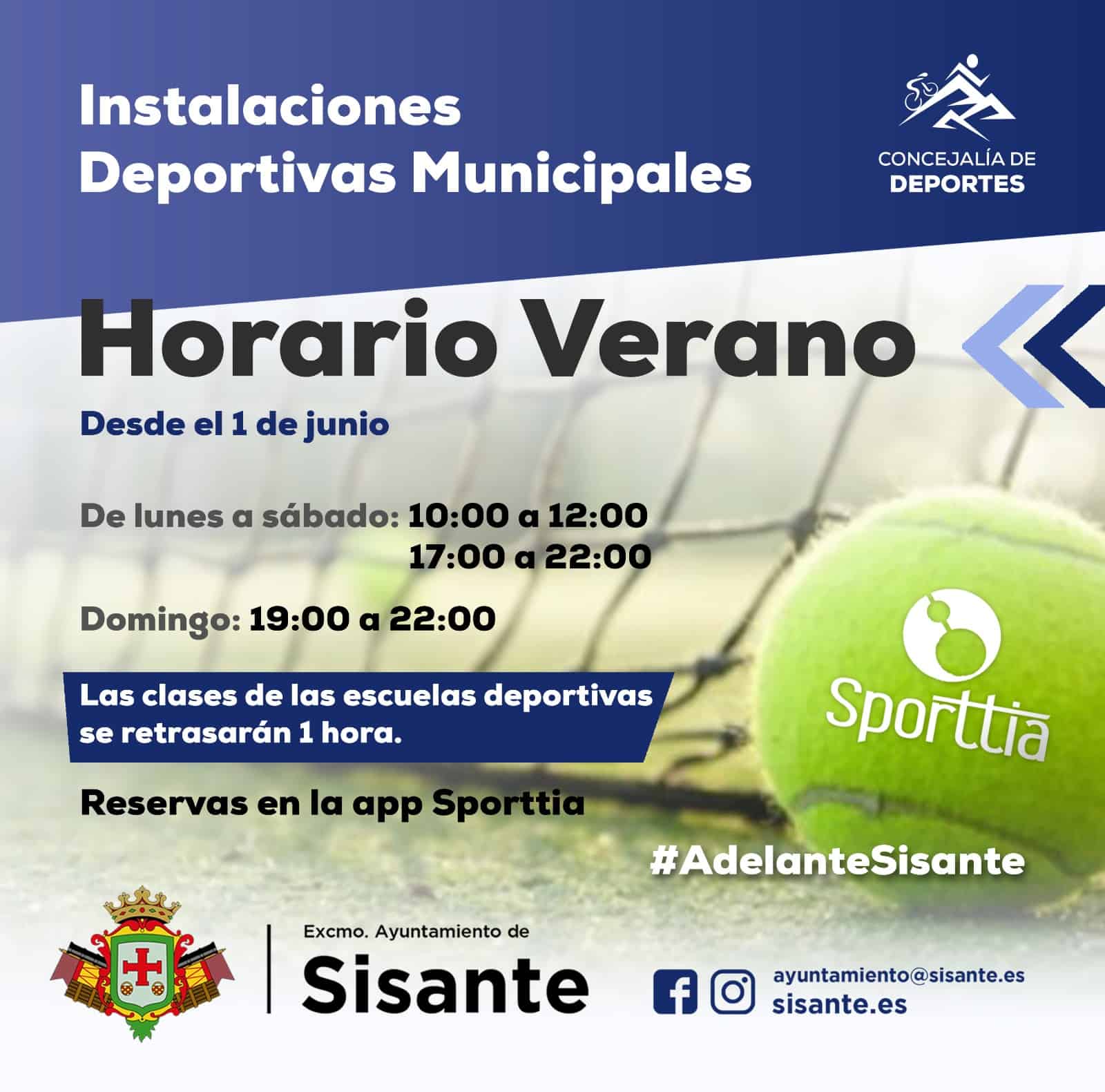 A partir de hoy lunes, 1 de junio, se modifica el horario de las instalaciones deportivas para adaptarlo a los usos veraniegos.