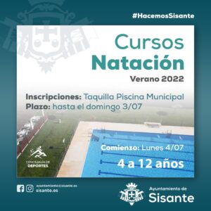 El próximo lunes, 4 de julio, comienzan los Cursos de Natación para la temporada de verano 2022, en la Piscina Municipal.