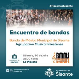 La Banda de Música Municipal de Sisante y la Agrupación Musical Iniestense protagonizarán un encuentro el próximo sábado, 30 de julio. Este evento se celebrará en la Placeta, a las 21:00 horas, y en él, ambas agrupaciones amenizarán la noche con música.