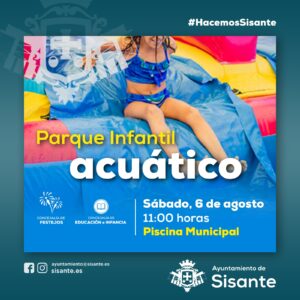 El sábado, 6 de agosto, los más pequeños podrán disfrutar del Parque Infantil Acuático que tendrá lugar en Sisante, organizado por las Concejalías de Festejos y de Eduación e Infancia.