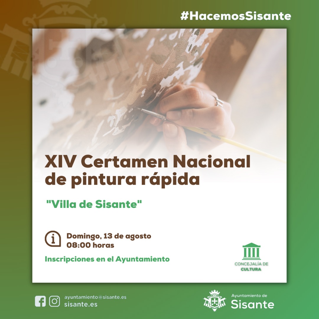 La Concejalía de Cultura del Ayuntamiento de Sisante organiza un año más el XVI Certamen Nacional de pintura rápida “Villa de Sisante” donde podrán participar todos los artistas que lo deseen, residentes en España y de cualquier otra nacionalidad.