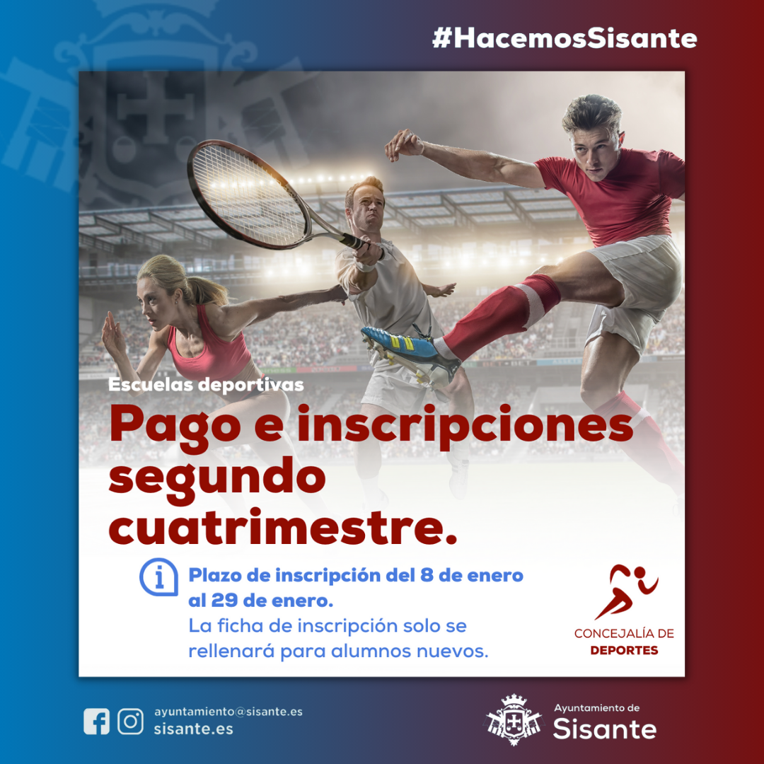 La Concejalía de Deportes del Ayuntamiento de Sisante abre el pago y plazo de inscripción a la escuela deportiva municipal para el segundo cuatrimestre del curso 2023/2024.