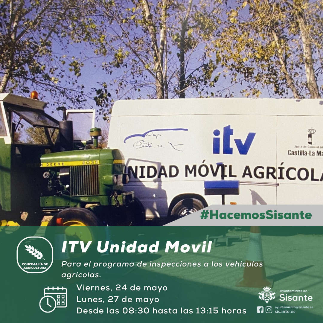 Desde el Ayuntamiento de Sisante se informa de la presencia de la Unidad Movil de ITV para el programa de inspecciones a los vehículos agrícolas.