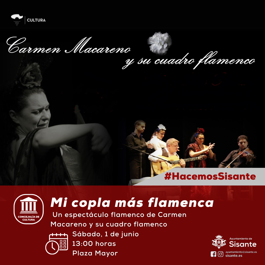 Desde la Concejalía de Cultura del Ayuntamiento de Sisante se ha programado el espectáculo flamenco de Carmen Macareno y su cuadro.