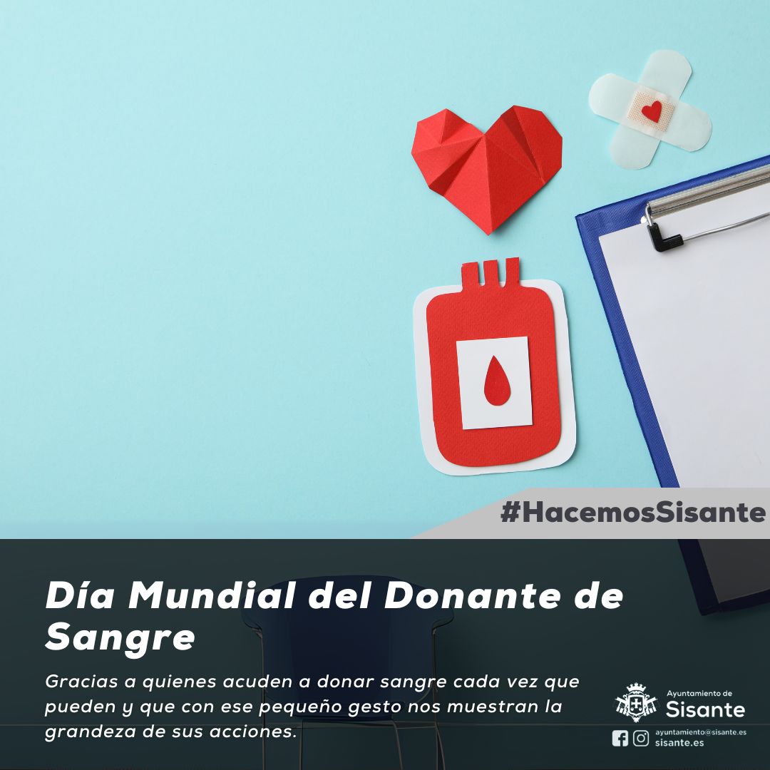 Desde el Ayuntamiento de Sisante queremos conmemorar hoy, 14 de junio, el Día Mundial del Donante de Sangre para agradecer a los donantes voluntarios la gran labor que hacen.