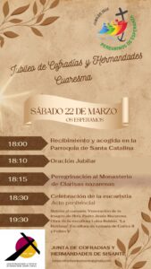 Desde la Junta de Cofradías y Hermandades de Sisante informan sobre la celebración del Jubileo de Cofradías y Hermandades enmarcado en el Año Jubilar 2025.