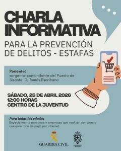 Desde el Ayuntamiento de Sisante os invitamos a asistir a una interesante charla sobre la prevención de delitos, centrada en estafas, especialmente en el ámbito digital.