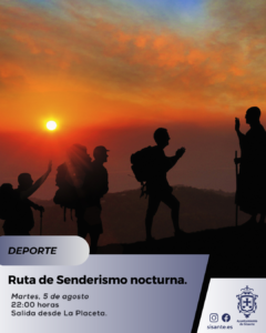 𝐑𝐔𝐓𝐀 𝐃𝐄 𝐒𝐄𝐍𝐃𝐄𝐑𝐈𝐒𝐌𝐎 𝐍𝐎𝐂𝐓𝐔𝐑𝐍𝐀 · 𝐒𝐈𝐒𝐀𝐍𝐓𝐄 𝟐𝟎𝟐𝟓 La Concejalía de Deportes del Ayuntamiento de Sisante ha organizado una Ruta de Senderismo Nocturna. Martes, 5 de agosto a las 22:00 horas Salida: La Placeta Una experiencia para