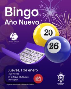 𝐆𝐑𝐀𝐍 𝐁𝐈𝐍𝐆𝐎 𝐍𝐀𝐕𝐈𝐃𝐄𝐍̃𝐎 Desde el Ayuntamiento de Sisante informamos que la Asociación Juvenil “Ataca Ciriaca” organiza, por segundo año, un divertido Bingo Navideño para comenzar el año con suerte. Jueves, 1 de enero 17:30 horas