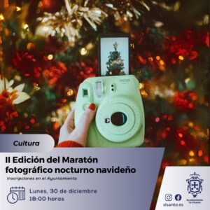 𝐈𝐈 𝐄𝐃𝐈𝐂𝐈𝐎́𝐍 𝐃𝐄𝐋 𝐌𝐀𝐑𝐀𝐓𝐎́𝐍 𝐅𝐎𝐓𝐎𝐆𝐑𝐀́𝐅𝐈𝐂𝐎 𝐍𝐎𝐂𝐓𝐔𝐑𝐍𝐎 𝐍𝐀𝐕𝐈𝐃𝐄𝐍̃𝐎 Desde la Concejalía de Cultura del Ayuntamiento de Sisante os invitamos a capturar la magia de la Navidad en nuestra II edición del Maratón Fotográfico Nocturno Navideño. Lunes,