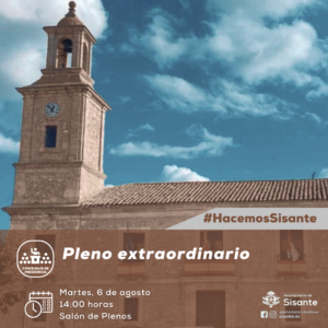 𝐏𝐋𝐄𝐍𝐎 𝐄𝐗𝐓𝐑𝐀𝐎𝐑𝐃𝐈𝐍𝐀𝐑𝐈𝐎 Desde la Concejalía de Presidencia del Ayuntamiento de Sisante se informa de la celebración del Pleno extraordinario de agosto. El pleno se celebrará con motivo de la aprobación inicial de la modificación de