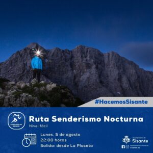 𝐑𝐔𝐓𝐀 𝐃𝐄 𝐒𝐄𝐍𝐃𝐄𝐑𝐈𝐒𝐌𝐎 𝐍𝐎𝐂𝐓𝐔𝐑𝐍𝐀 La Concejalía de Deportes del Ayuntamiento de Sisante ha organizado, un año más, la ruta de senderismo nocturna. Lunes, 5 de agosto, a las 22:00 horas El punto de partida será
