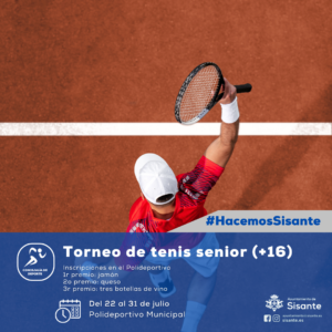 𝐓𝐎𝐑𝐍𝐄𝐎 𝐃𝐄 𝐓𝐄𝐍𝐈𝐒 𝐒𝐄𝐍𝐈𝐎𝐑 La Concejalía de Deportes del Ayuntamiento de Sisante organiza un año más el Torneo de Tenis Senior para mayores de 16 años. Del 22 al 31 de julio Edad: a partir