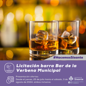 𝐋𝐈𝐂𝐈𝐓𝐀𝐂𝐈𝐎́𝐍 𝐁𝐀𝐑𝐑𝐀 𝐁𝐀𝐑 𝐃𝐄 𝐋𝐀 𝐕𝐄𝐑𝐁𝐄𝐍𝐀 𝐌𝐔𝐍𝐈𝐂𝐈𝐏𝐀𝐋 Desde la Concejalía de Festejos del Ayuntamiento de Sisante informamos de la apertura del plazo de licitación para la adjudicación de la barra del bar de la Verbena