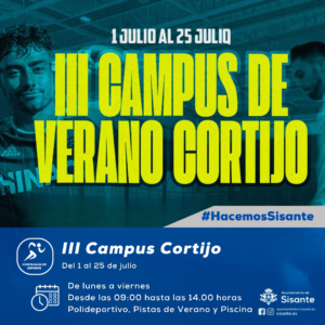𝐈𝐈𝐈 𝐂𝐀𝐌𝐏𝐔𝐒 𝐂𝐎𝐑𝐓𝐈𝐉𝐎 Desde la Concejalía de Deporte del Ayuntamiento de Sisante anunciamos el III Campus de Verano Cortijo a cargo, de nuevo, de Cortijo Entrenamiento. Del 1 al 25 de julio De lunes a