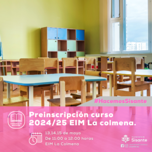 𝐏𝐑𝐄𝐈𝐍𝐒𝐂𝐑𝐈𝐏𝐂𝐈𝐎́𝐍 𝐂𝐔𝐑𝐒𝐎 𝟐𝟎𝟐𝟒/𝟐𝟓 𝐄𝐈𝐌 𝐋𝐀 𝐂𝐎𝐋𝐌𝐄𝐍𝐀 Desde la Concejalía de Educación del Ayuntamiento de Sisante informamos de la próxima apertura del plazo para realizar la preinscripción en la Escuela Municipal Infantil La Colmena para el