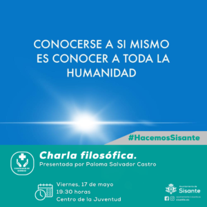 𝐂𝐇𝐀𝐑𝐋𝐀 𝐅𝐈𝐋𝐎𝐒𝐎́𝐅𝐈𝐂𝐀 Desde la Concejalía de de Sanidad del Ayuntamiento de Sisante informa de la realización de una charla filosófica. Nos complace anunciar que Paloma Salvador Castro será la encargada de presentar esta fascinante charla