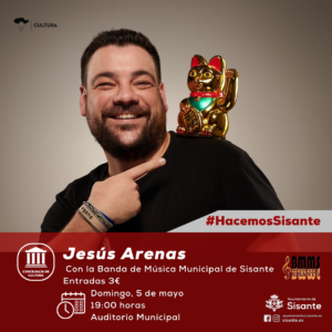 𝐉𝐄𝐒𝐔́𝐒 𝐀𝐑𝐄𝐍𝐀𝐒 Desde la Concejalía de Cultura del Ayuntamiento de Sisante se ha programado un espectáculo humorisitico y musical con Jesús Arenas. Junto a él, participará la Banda de Música Municipal de Sisante. Domingo, 5