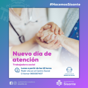 Desde la Concejalía de Bienestar Social del Ayuntamiento de Sisante se informa del cambio de día de la atención de la trabajadora social. Desde la próxima semana, la atención se llevará a cabo todos los