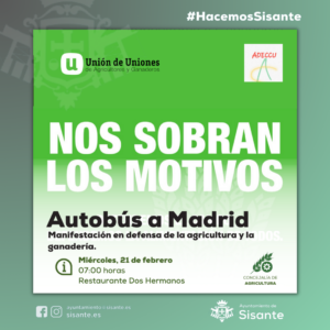 Autobús manifestación en Madrid en defensa de la agricultura: «Nos sobran motivos» Desde la Concejalía de Agricultura del Ayuntamiento de Sisante se ha organizado la salida de un autobús hacia Madrid para quienes quieran asistir