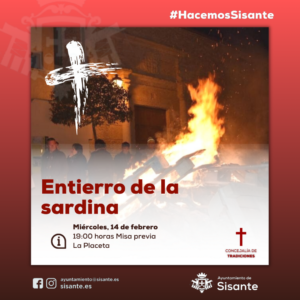 Desde la Concejalía de Tradiciones del Ayuntamiento de Sisante se ha organizado, el tradicional entierro de la sardina. Hoy, miércoles, 14 de febrero a las 19:00 horas tendrá lugar previamente la misa en honor al miércoles
