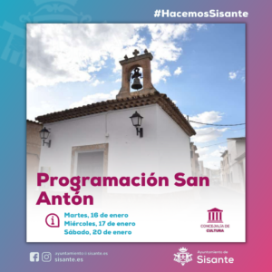 Desde el Ayuntamiento de Sisante compartimos la programación de la semana con motivo a los actos en conmemoración al patrón San Antonio Abad. Martes, 16 de enero. A las 17:00 horas, tendrá lugar el traslado de