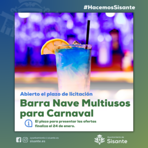 Desde el Ayuntamiento de Sisante se informa que hoy se ha abierto el plazo de presentación de proposiciones para la explotación de la barra del bar de la Nave Multiusos Municipal el 10 de febrero