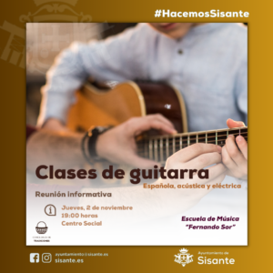 Desde la Concejalía de Tradiciones del Ayuntamiento de Sisante, se realizará una reunión informativa para la organización de clases de guitarra. Desde la Escuela de Musica «Fernando Sor» se impartirán clases de guitarra española, acústica